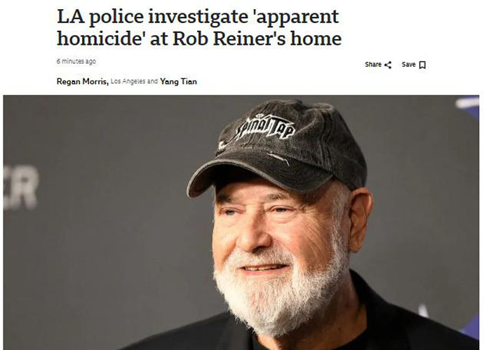 另據美國廣播公司(ABC)最新報導,房產記錄顯示該住宅屬於羅伯·萊納,高級執法部門消息人士告訴ABC,受害者在遇襲後身亡,洛杉磯警察局表示,這是一起明顯凶案。