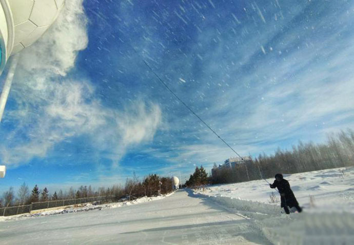 ↑圖說:漠河站工作人員在冰天雪地的環境中工作(中國科學院空天院供圖)。