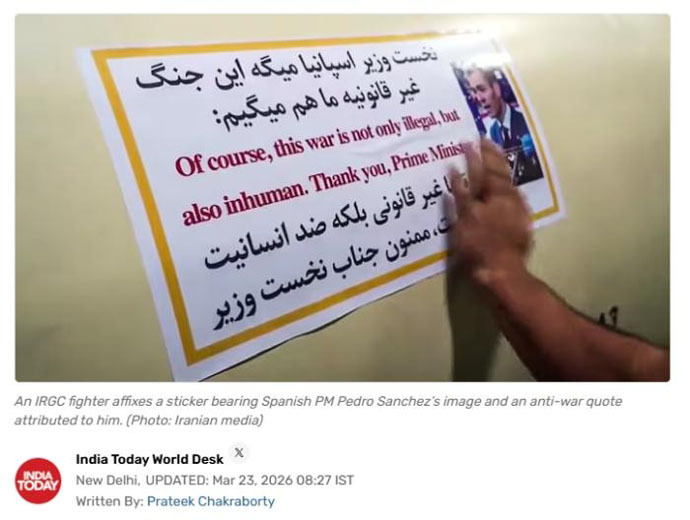 伊朗導彈上寫著感謝西班牙首相 西班牙首相桑切斯曾表示 美以對伊朗的軍事行動是“極其嚴重的錯誤”