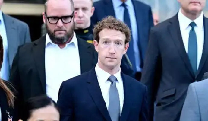 ↑圖說:2月18日,Meta首席執行官紮克伯格在出庭作證後離開洛杉磯高等法院(供圖)。