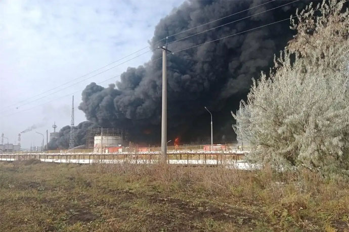 ↑圖說:據烏方通報,被擊中的目標包括位於俄羅斯薩馬拉州的新古比雪夫煉油廠和瑟茲蘭煉油廠,列寧格勒州的盧克石油油品裝卸碼頭以及克拉斯諾達爾邊疆區的季霍列茨克輸油泵站(供圖)。