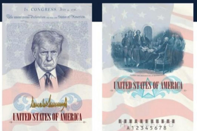 根據國務院提供的圖片,新護照內頁將印有川普的肖像,肖像疊加在《獨立宣言》的文本和美國國旗之上,下方是金色字體的川普簽名,護照另一頁將印有展示美國開國元勳簽署《獨立宣言》的著名畫作。