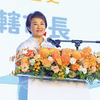 台中市長盧秀燕24日率市府團隊,以「七年同行、幸福前行」為主軸,向市民報告施政成果。