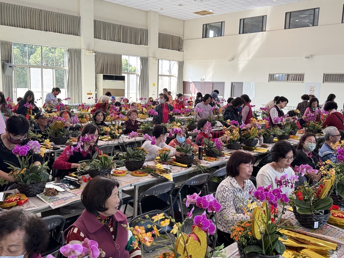 邱素貞親自示範教學,從花材配置、層次安排到象徵意涵逐一說明,帶領民眾完成專屬的新春盆栽。 她表示,市面年節盆花價格不低,透過DIY方式,不僅能減輕負擔,也能依個人喜好設計,更有參與感與成就感。 活動報名迅速額滿,反應相當熱烈。