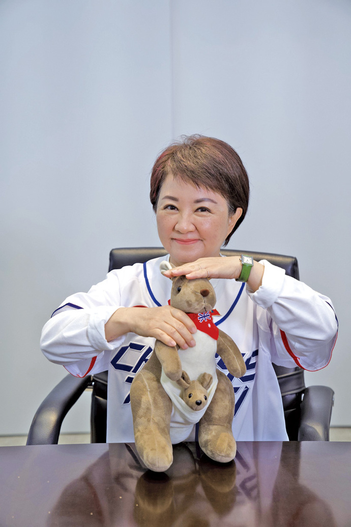 圖說:台中市長盧秀燕以象徵抗澳成功的袋鼠玩偶,期許中華隊經典賽首戰告捷。 (中市府提供)
