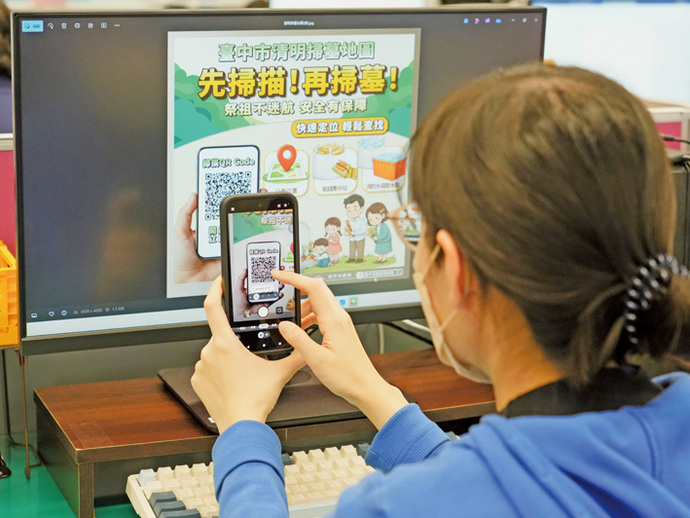 圖說:祭祖不迷航,掃描清明掃墓地圖QRCode,即可提前規劃路線。 (中市民政局提供)
