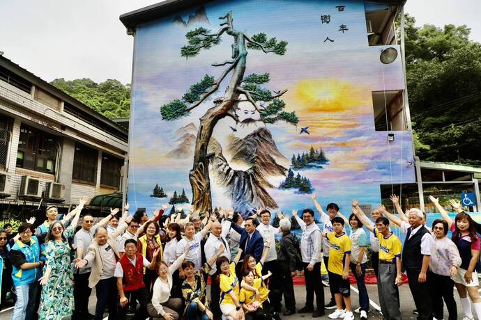 校慶活動最大亮點為「百年樹人」泥畫牆揭幕儀式,原作品由在地藝術家楊敏郎創作,近日在他的指導下,由畫家蔡峻華重新整修並融入「百年」意象,象徵永定國小百年深耕教育、薪火相傳的精神。 整體創作以楠木為主軸,傳達「教育如樹、孕育未來」的理念,並結合臺灣藍鵲等在地生態元素,呈現孔子迎學意象;雙手作揖形成的山形,也象徵玉山,寓意教育的穩固與崇高,胸懷有教無類的人文價值。