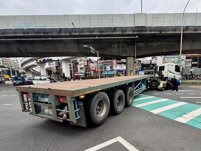 轄區江翠派出所與交通分隊派員到場,係張男駕駛拖板車行經上址時未依標誌標線違規右轉,不慎碰撞騎乘自行車的卓女,所幸卓女意識清楚,暫無生命危險,目前已送往亞東醫院救治。