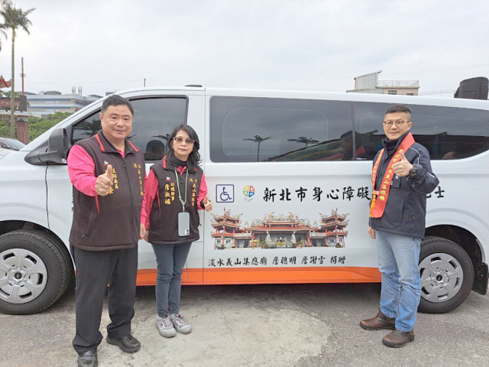 【記者林富貴/新北市報導】8日,淡水義山集應廟舉辦安座52周年慶,志工詹淑媚再度以廟方及父母名義捐贈一輛雙乘坐位復康巴士給新北市,由市府副秘書長張其強代表侯友宜市長受贈。 詹淑媚表示,父母有養育之恩,且生前樂善好施,熱心公益;而集應廟保儀尊王尪公祖有許多顯化在她身上,讓她逢凶化吉,因此特地藉由廟慶捐贈。 詹淑媚也曾以廟方名義捐贈1輛救護車給馬偕醫院,捐給新北市的復康巴士則累計達4輛。