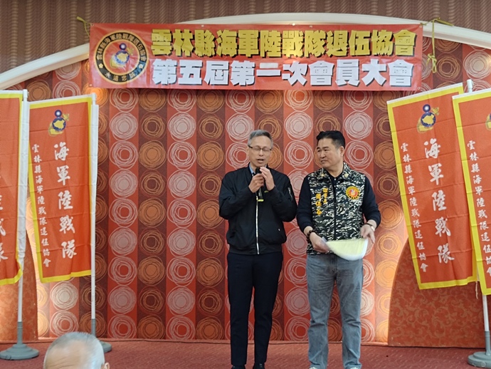 【記者林富貴/雲林報導】增進退伍軍人社團情誼,凝聚向心力,雲林縣海軍陸戰隊退伍協會日前舉辦「第五屆第二次會員大會」,雲林縣榮民服務處應邀出席,周保谷理事長、李祖光輔導理事長、郭永興榮譽理事長與地方退伍軍人代表及會員齊聚一堂,場面熱絡溫馨。