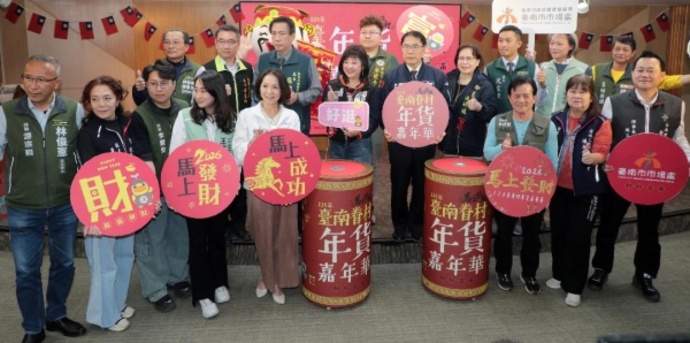 市場處指出,活動以「馬年意象」結合年貨採買,祝福民眾「財運馬上到」相關活動資訊請關注「臺南市市場巡禮」臉書專頁。 出席記者會包括議員陳秋萍、沈震東出席,立委林俊憲、陳亭妃、王定宇辦公室及各議員服務處也派代表到場響應。
