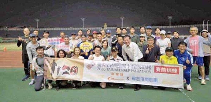 【記者吳淑華/台南報導】「2026臺南古都國際半程馬拉松」迎來20週年里程碑,賽事將於2026年3月1日(星期日)在臺南市政府永華市政中心南島路盛大舉行,臺南市政府跨局處一起以行動支持古都馬,林榮川副秘書長、徐健麟副秘書長、市長室林唯莉秘書、主計處李錫東處長、客家事務委員會陳新裕主任委員、體育局陳怡平人事主任齊聚臺南市體育場參與賽前訓練,不僅能提升心肺功能及肌耐力,也能提升跑步知能,避免運動傷害,讓大家能夠朝著心中設定的目標邁進。