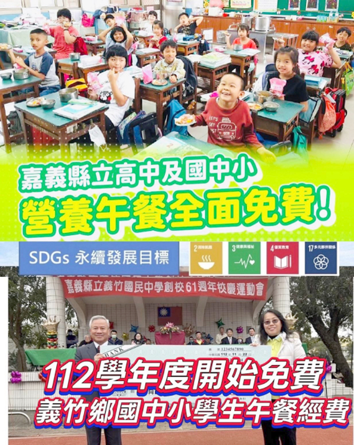 【記者廖淳曼/嘉縣報導】看到縣府宣布「嘉義縣立高中及國中小營養午餐全面免費」,真的替孩子們感到開心,也樂見這樣的政策方向。