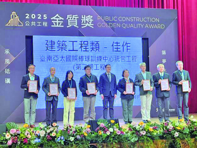 【記者吳淑華/台南報導】公共工程委員會主辦,被譽為「工程界奧斯卡獎」的公共工程金質獎,(21)日舉行頒獎典禮,獲獎名單於日前揭曉,臺南市政府工務局「市道175線25.4K地滑區」榮獲公共設施維護管理獎『優等』、「臺南亞太國際棒球訓練中心統包工程(第二期工程)」榮獲建築工程類『佳作』,地政局「臺南市喜樹灣裡市地重劃、代辦區外灣1滯洪池及抽水站工程」則榮獲土木工程類『佳作』,成績斐然。 對於市府工程屢獲佳績,市長黃偉哲甚表欣慰,將於市政會議公開表揚。