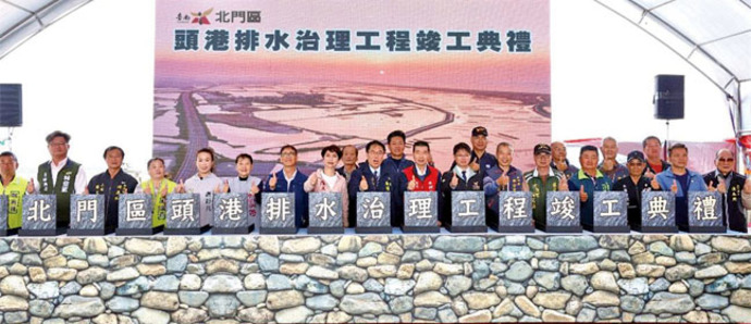 【記者吳淑華/台南報導】為強化北門區抵禦沿海暴潮及颱風豪雨防洪能力,台南市政府爭取經濟部水利署前瞻水安全計畫7,000萬元補助,辦理「北門區頭港排水治理工程」,共計完成護岸改善1,263公尺。 市府舉辦工程竣工典禮,市長黃偉哲表示,工程透過護岸背填培厚及生態友善工法,除大幅提升排水護岸安全性,並同時兼顧低碳與生態保育,展現中央與地方攜手合作,防洪安全與生態環境雙贏成果。