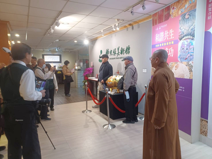 龔一舫老師在開幕場親自叁加與佛光山台北道場佛光緣美術館等出家眾,以及佛光山的信眾等人交流創作經驗談也親自導覽作品,現場活動相當熱絡,相當溫馨。