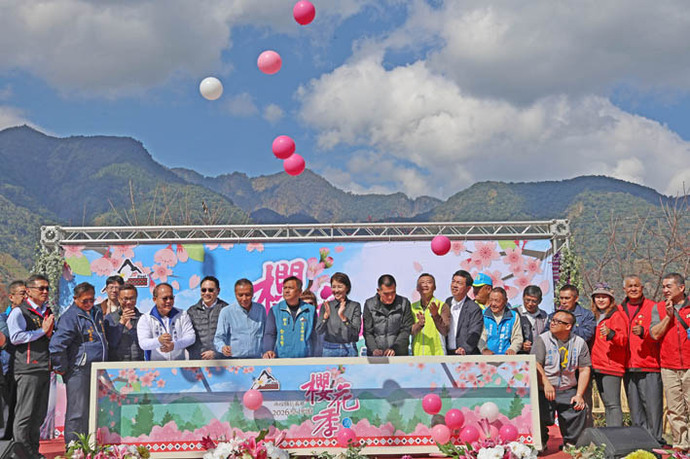 【記者朱怡甄、李光曜/信義報導】春節連假將至,全台賞櫻指標「信義鄉草坪頭櫻花季」正式揭開序幕!南投縣長許淑華出席啟動記者會,宣布玉山高山茶產地草坪頭園區內逾4,000棵櫻花、李花已陸續綻放,紅、白花瓣交織點綴茶山。 許淑華縣長邀請全國民眾到信義鄉體驗「花與茶的饗宴」,不僅能漫步櫻花小徑,更可順遊東埔溫泉、雙龍吊橋,度過一個充滿自然與人文底蘊的充實假期。