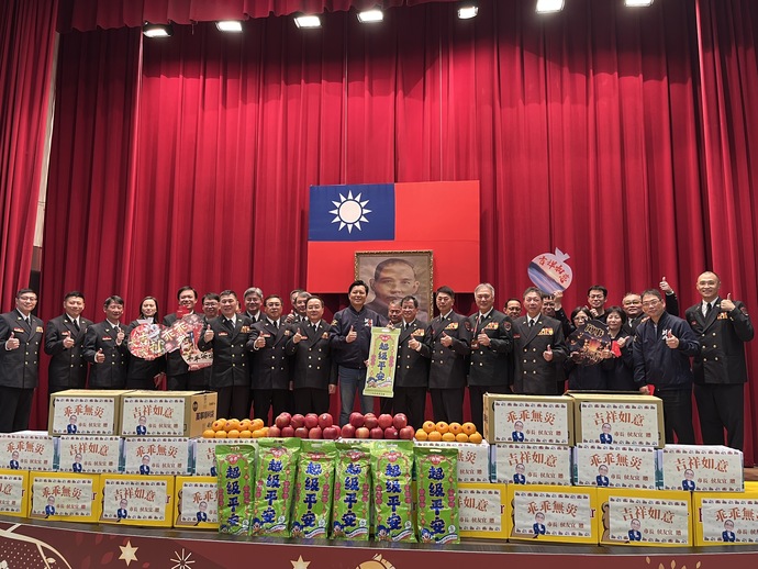 而朱副市長也特別感謝消防英雄於去(114)年9月馳援花蓮縣光復鄉馬太鞍溪堰塞湖溢流災害,歷時7天不眠不休,完成多起救援任務,協助數百位民眾平安脫困,展現新北消防團隊的專業、善良與團結精神。 最後,也提前向消防同仁賀年,致贈象徵平安與祝福的慰問品,期勉大家持續守護市民安全,並預祝全體消防夥伴新年平安順利。