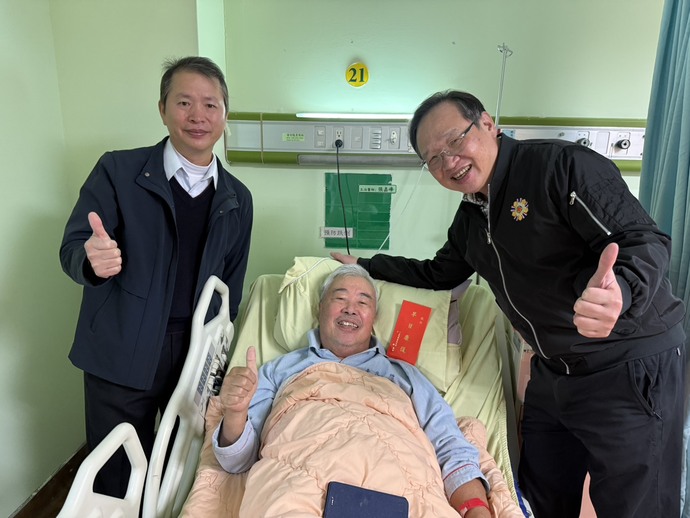 慰問過程中,酆世俊主任親切探視王伯伯,詳細關心其身體狀況及住院期間的生活情形,並致贈慰問金及營養品,祝福王伯伯安心療養、早日康復。 主任亦與王伯伯話家常、傾聽需求,傳達八德榮家始終陪伴在側、做為長輩最堅實後盾的心意。