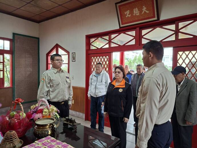 典禮由榮家主任張筱貞親自主祭,率領全體幹部、各級主管及住民長輩代表,共同向歷年亡故榮民與烈士先賢獻香悼祭,表達對先前輩犧牲奉獻、保國衛民精神的崇高敬意。