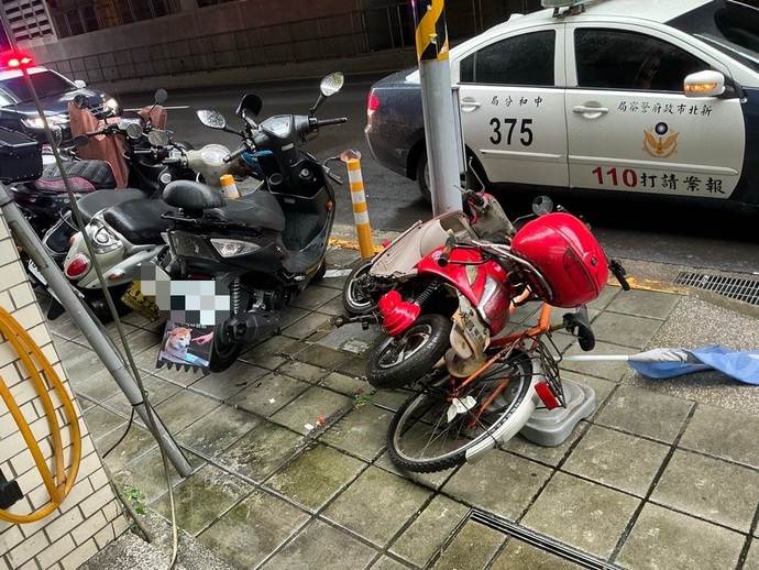 【記者林富貴/新北市報導】4日10時許,龔男(80歲)騎乘普通重型機車,於景平路人行道起步往新店方向行駛時,自述因油門卡住致車輛失控暴衝,撞擊停放於人行道停車格內8輛機車。