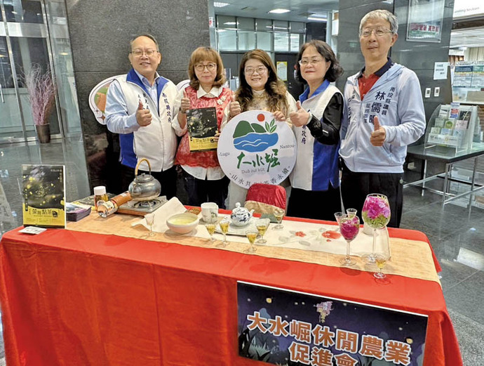 圖:2026南投螢火蟲季啟動李良珠秘書長、觀光處長陳志賢等與大水堀休閒農業促進會合影。 (記者李光曜/攝)