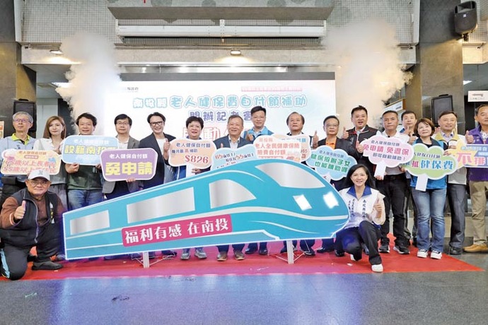 圖:南投縣政府舉辦南投縣「老人全民健康保險保險費自付額補助計畫」啟動記者會合影。
