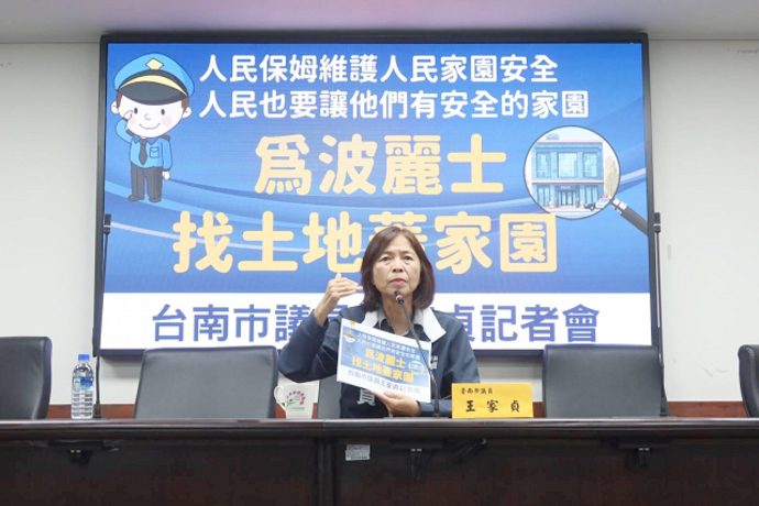 【記者袁登峯/台南報導】台南市議員王家貞召開「為波麗士找土地蓋家園」記者會,為基層警員請命,要求市府儘速改善台南市警察局第一分局廳舍老舊問題,讓基層警員能在安全完善的環境中安心辦公。
