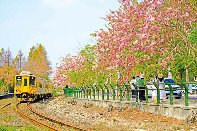 圖:沿線花海與鐵道景致交織吸引民眾駐足拍攝。 (記者李光曜/攝)