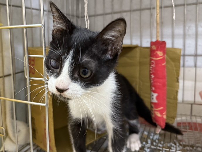 新店動物之家動保員表示,小黑白貓剛到我們收容中心時,因為剛手術完暫時變成「獨眼龍」,平衡感還沒恢復走路會歪歪斜斜的,幸好牠食慾不錯,獸醫開的藥都有按時吃完,而且還很努力地遊玩做復健,才能這麼快的恢復健康,並在汐止藍世界愛心認養小棧找到新家。 王姓飼主表示,聽到小黑白貓受傷治療及恢復的情況後,很心疼牠之前的遭遇,她會好好疼牠給牠一個溫暖安全的家。