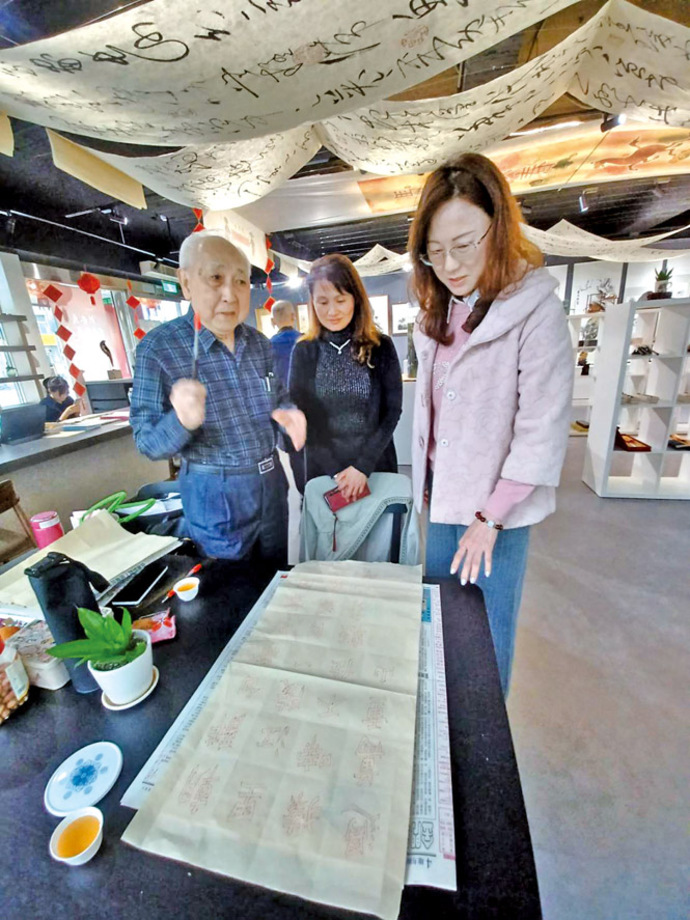 【記者廖武龍/台北報導】書法大師洪啟義嘗試將竹筆書法推向新的邊界「空筆書法」。 最近在其書畫收藏展中,洪啟義大師露了一手空筆書法,引起熱烈廻響。