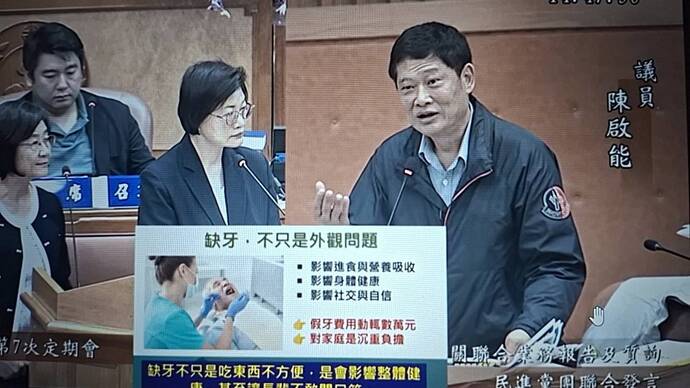 新北市衛生局長陳潤秋回應表示,全口假牙重建人數其實僅占少數,市府目前以預防為主,提供塗氟等措施。 然而陳啟能當場反擊:「既然只有少部分,那就更應該做!讓真正需要的長者得到幫助,而不是用比例當藉口不做!」
