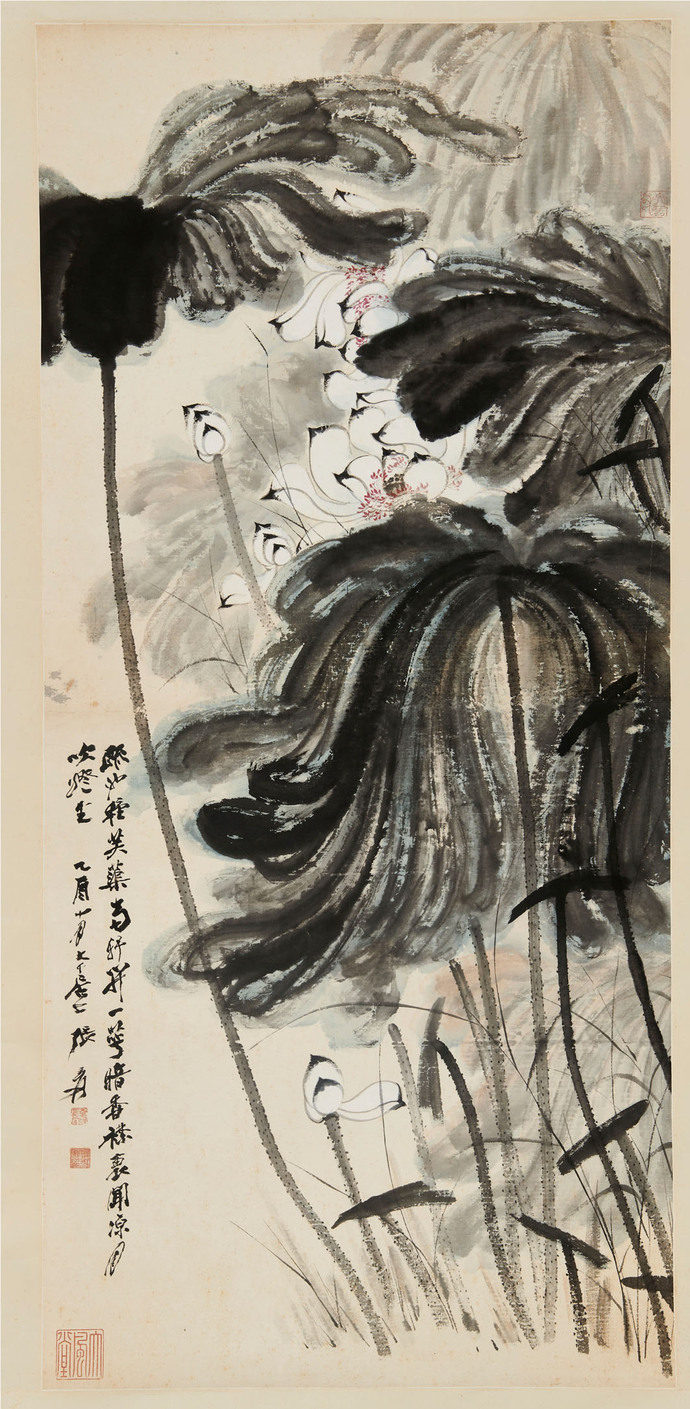 ,是張大千墨荷的經典手法,既有畫面