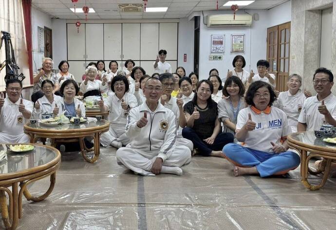 【圖說】曾任企業總經理的太極門弟子李斐隆(前中),分享他跟隨師父修行三十一年學到的「捨得」智慧與修心歷程。