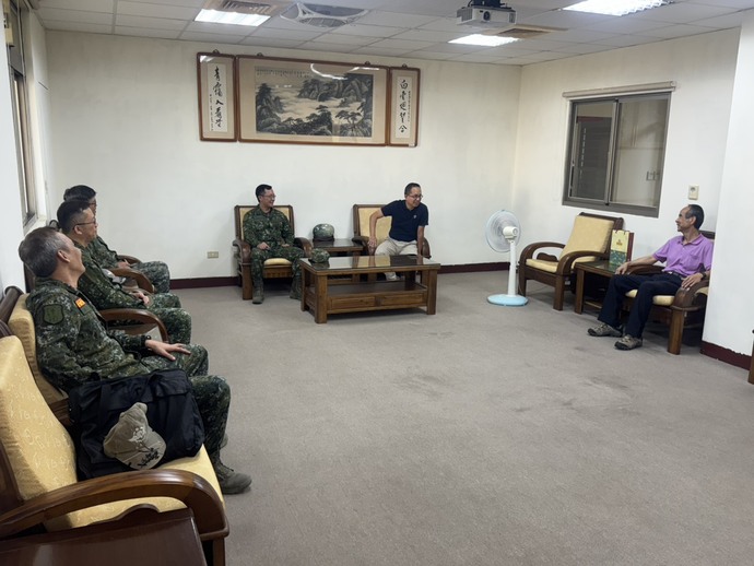高雄市後備一旅駐地位於燕巢區鳳雄營區,與岡山榮家地理位置相近,歷任主官均與榮家互動密切;對於彼此重要活動,於不影響各自公務前提下,均予全力支持。 這次該旅的現地戰術任務因含括岡山榮家(該旅責任地境內),即於現勘同時拜會岡山榮家。 拜會期間林旅長再次對於年(115)初家區提供場地得以順利執行全軍教召任務表達感激之意,並藉此次拜會機會,介紹三位隨行雇員教官認識榮家環境。