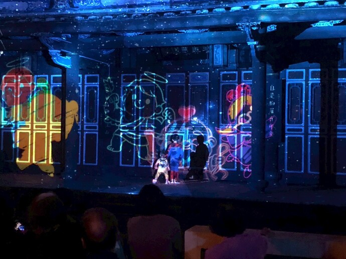 新北市文化局表示,今年光雕秀以「愛情與祈願」為主軸,牛郎織女愛情傳說為靈感,融合光影與園林建築,將「來青閣」化作舞台,展現古蹟於夜間的嶄新敘事方式,帶領觀眾沉浸於五幕式光影劇情,包括〈天光雲彩〉、〈紅塵初遇〉、〈人間生活〉、〈天命斷情〉與〈鵲橋團圓〉,呈現愛情跨越時空的動人篇章。 此外,民眾還可透過手機掃描QRCode,選擇喜愛的祝福角色,即時創作專屬圖像並投影於古蹟建築,打造沉浸式體驗。