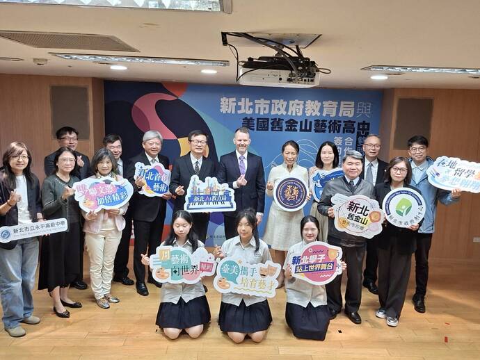 張明文局長表示,舊金山藝術高中通過多項美國教育機構認證,以嚴謹學術訓練與頂尖藝術專業聞名,課程涵蓋視覺藝術、聲樂、器樂、音樂劇、芭蕾及中國舞等多元領域,長期培育學生進入全球頂尖藝術與設計學院。 他指出,這次合作不只是課程共享,更是把世界級藝術教育帶進新北,讓孩子在地就能與國際對話,提早接軌世界舞台。 此次藝術雙聯學制全面開放新北市高中生申請,特別有助於美術班、音樂班、舞蹈班等藝術才能班學生拓展升學管道。 課程採混合式設計,學生可在臺線上修讀美國AP(大學先修)與藝術專業課程,暑期再赴美參與密集實體創作與工作坊,體驗跨文化學習。 並由合作學校將提供一對一升學諮詢,引導學生探索最適合自身的藝術與學術發展方向,順利銜接美加等地的知名藝術大學與設計院校。