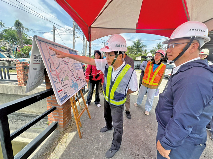 (圖說):高雄副市長林欽榮視察曹公新圳排水清疏、八涳橋改建及夢裡滯洪池,全力備戰汛期挑戰。 (記者郭于榛/翻攝)