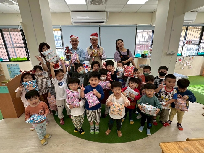 耶誕節不只是收禮物的日子,更是學習分享與感恩的重要時刻。 孩子們也學習製作一個迷你耶誕樹與花圈贈送處長,透過贈送禮物的活動,引導幼兒體會被關心、被祝福的感受,也學習珍惜與感謝身邊的人。