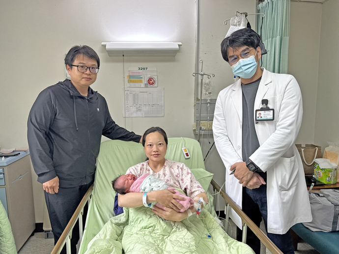 林小姐表示,原預產期為1月5日,沒想到女兒提前在元旦報到。 全程陪產的爸爸看到女兒平安出生,感到相當激動與喜悅,夫妻倆對顏醫師及醫療團隊的專業照護表達由衷感謝,讓母女均安。