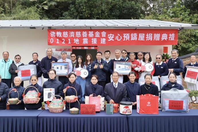 【記者潘志航/台南報導】台南於去(114)年1月21日發生楠西地震,造成部分山區民宅受損,為協助災民儘早恢復正常生活,台南市政府與佛教慈濟慈善事業基金會攜手合作,針對受損嚴重的家戶進行災後重建。 日昨於楠西區密枝里舉辦「0121地震慈濟援建安心預鑄屋捐贈儀式」,台南市長黃偉哲特別親自出席見證,並與慈濟志工團隊共同關心受災戶送上祝福,他也感謝慈濟基金會發揮大愛精神,以高效率完成楠西、玉井及左鎮共6戶「預鑄安心屋」的興建,展現公私協力的韌性,讓鄉親能在農曆年前平安入住新家。