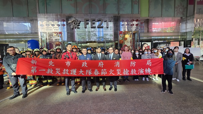 【記者林富貴/新北市報導】在農曆春節期間為大型商場、百貨、賣場等公共場所人潮消費高峰期,因此災害發生時易產生傷亡事件,為確保火災發生時,商家自衛消防編組機制可快速啟動疏散顧客與員工,及培養與消防單位之救災合作默契,新北消防局第一救災救護大隊於1月23日攜手遠東百貨股份有限公司板橋分公司舉辦春節前火災搶救演練,總計動員板橋小遠百商家員工及消防人力約百餘人次參與,以提升火災搶救效能及減少人命傷亡。