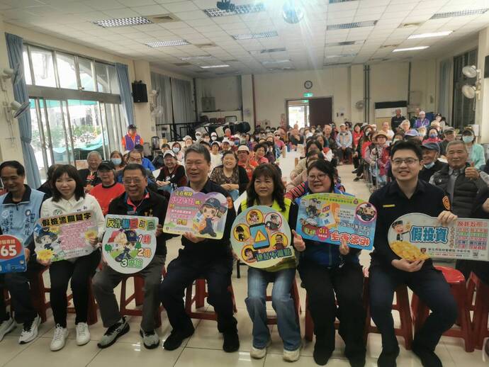 在活動中,分局長向長輩們分析詐騙案例,並使用有獎徵答的方式與長輩們互動,提升對詐騙特徵加深印象,更增添宣導的趣味性。