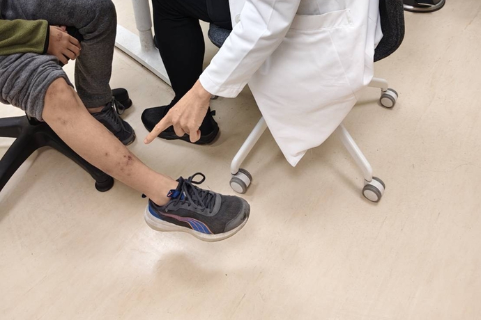 兒科過敏氣喘免疫科王怡人主任表示,男童看診時症狀表現多元,容易被誤認為一般呼吸道感染或病毒性疾病,但在理學檢查過程中,她敏銳發現男童右腿有一處黑色焦痂,外觀像被煙蒂燙傷,而病人毫無痛癢的感覺。 進一步詢問得知,男童近期曾至苗栗山區露營,同團也有人出現紅疹,這個關鍵線索,讓她提高警覺,朝恙蟲病方向評估。