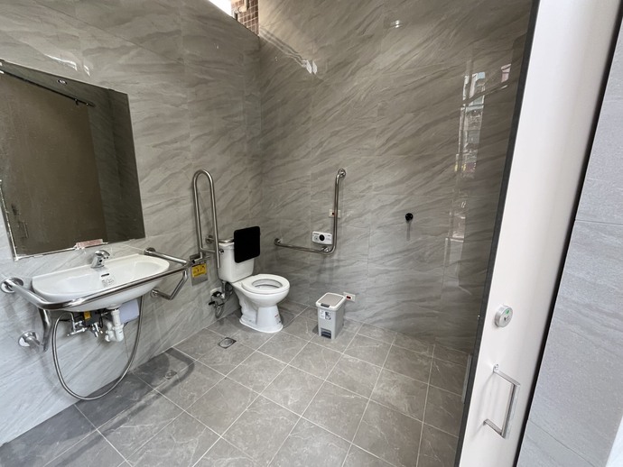 對過去無障礙廁所規格不符現行法規的問題,本次工程特別精進空間機能。 改善後的無障礙廁所具備足夠的輪椅迴轉直徑(150公分以上),並全面換裝感應式沖水及符合規格的防滑扶手,讓身障朋友及行動不便的長者能享有符合安全標準且尊嚴的如廁環境。