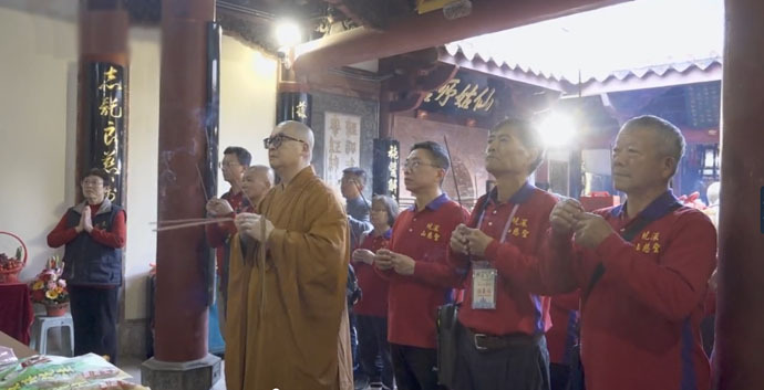 【記者林孟媛/外電報導】1月25日,台灣新北市深坑聖慈山方丈常源法師、主任委員許恭銘帶領保生大帝信眾一行,在獲得分靈認證後,帶著來自台灣的貢品、高山茶,首次回到祖廟福建泉州花橋慈濟宮謁祖進香,行“五獻三拜”大禮,並與花橋慈濟宮互贈紀念品。