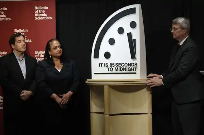 《原子科學家公報》指出,核大國的強勢行為、核軍控體系的瓦解、俄烏衝突、氣候變化、生物技術以及對人工智能的憂慮,共同推高了全球災難風險,該雜誌特別指出,美國總統川普重返白宮的第一年,環境、公共衛生和其他科學機構的人員和預算都被削減,這也加劇了風險。
