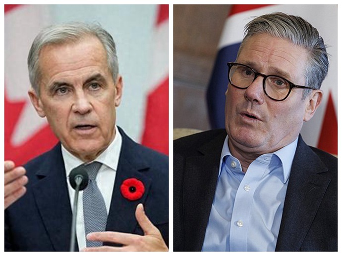 ↑圖說:加拿大總理卡尼與英國首相斯塔默(資料圖)