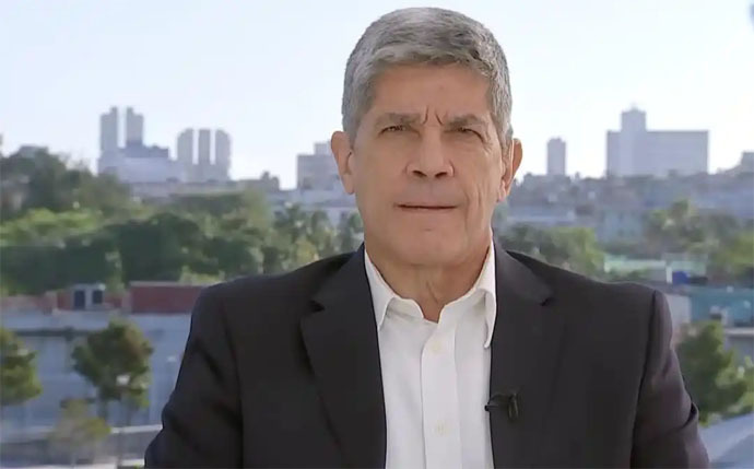 ↑圖說:當地時間3月22日,美國全國廣播公司《與新聞界對話》節目中,古巴外交部副部長德科西奧接受採訪(視頻截圖)。