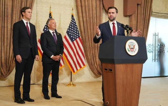 ↑圖說:美國副總統萬斯在會後召開記者會(供圖)。